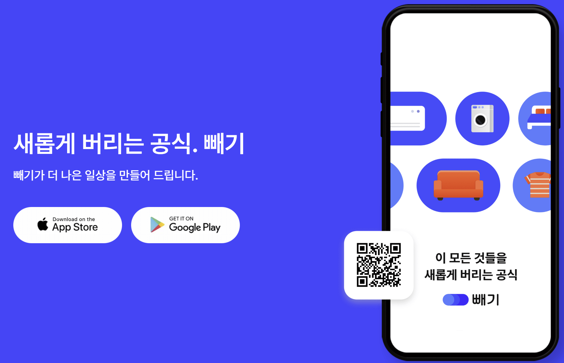 '빼기'앱은 '같다'라는 회사에서 만든 대형 폐기물 간편 신청 앱으로, 지금까지 28곳의 지차체와 협약을 맺고, 대형 폐기물 수거 업체들이 들어와 있는 플랫폼 어플입니다. 그래서 개인 고객들이 앱으로 폐기물 사진을 찍고 결제를 하면 지역의 업체가 와서 수거를 해가는 시스템입니다. 추가로 '내려드림'도 있어 혼자 사는 가구들이 많은 요즘 비용을 조금만 추가하면 내가 직접 옮기지 않아도 되는 특별함도 갖춘 앱으로 참 유용합니다!